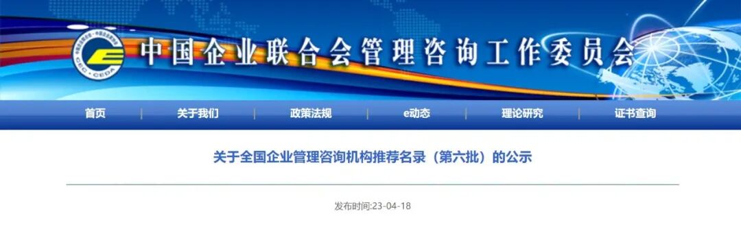 2023年4月18日,中国企业联合会公示了名单,全国共25家咨询机构入选,福建省内仅有3家名列其中,厦门诚新咨询凭借专业的服务和雄厚的实力成功入选全国企业管理咨询机构推荐名录名单。